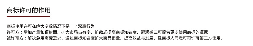 商標注冊人可以通過簽訂商標使用許可合同,許可他人使用其注冊商標。許可他人使用其注冊商標的,許可人應(yīng)當在許可合同有效期內(nèi)向商標局備案并報送備案材料。備案材料應(yīng)當說明注冊商標許可人、被許可人、許可期限、許可使用的商品或者服務(wù)范圍等事項。